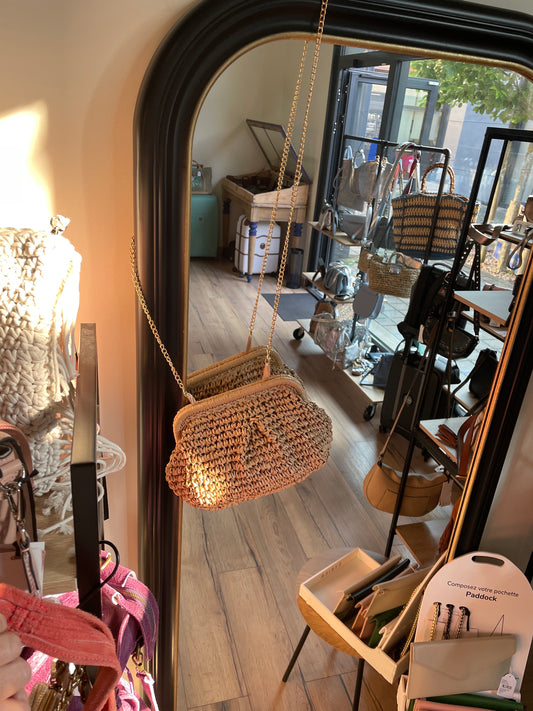 Sac/pochette ROMY beige à bandoulière en chaîne dorée amovible