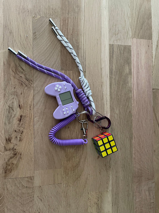 Bijou de sac - Manette de jeux + rubik’s cube Violet