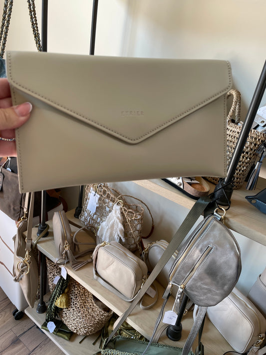 Pochette Paddock / sac de soirée en cuir lisse Craie