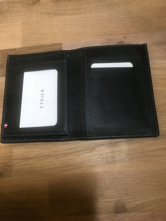 Porte-papiers/porte-cartes en cuir marine ligne Madras - Étrier