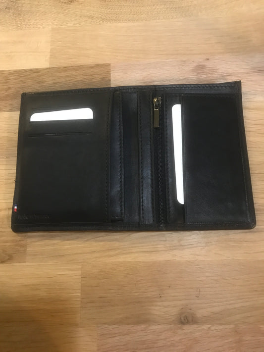 Porte-papiers/porte cartes en cuir noir ligne Madras - Étrier