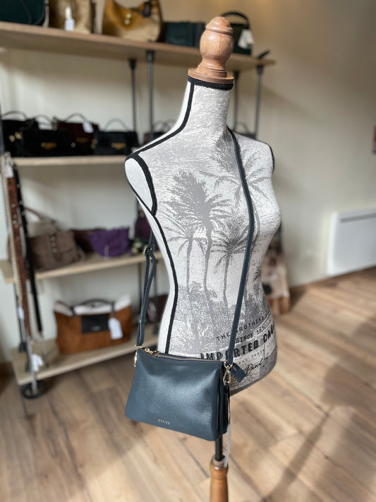 Sac bandoulière S Foulonné cuir noir bleu - Étrier