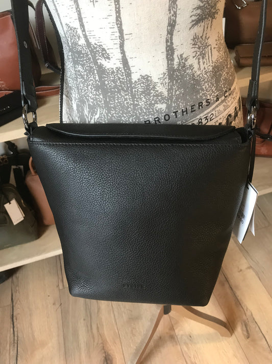 Sac bandoulière en cuir au look vintage ligne CROSTA coloris noir - Étrier