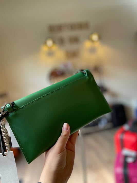Pochette, sac de soirée en cuir coloris vert prairie ÉTRIER