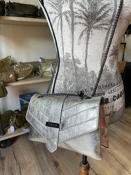 Sac bandoulière ligne JANA IRISÉ en cuir Argent - ÉTRIER