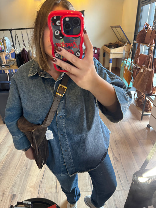 Banane Happy en daim et cuir grainé avec franges coloris Brun