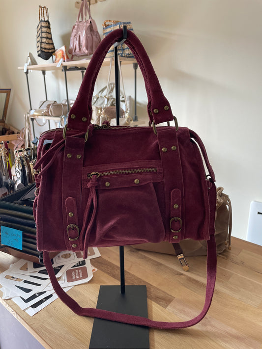 Sac Amandine moyen en cuir suédé (coloris bordeaux)