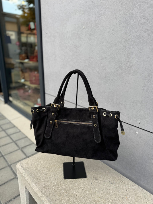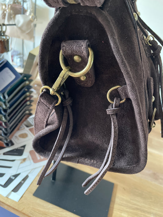 Sac Amandine moyen en cuir suédé (coloris brun foncé)