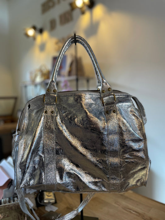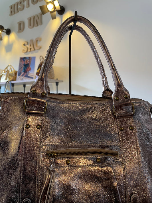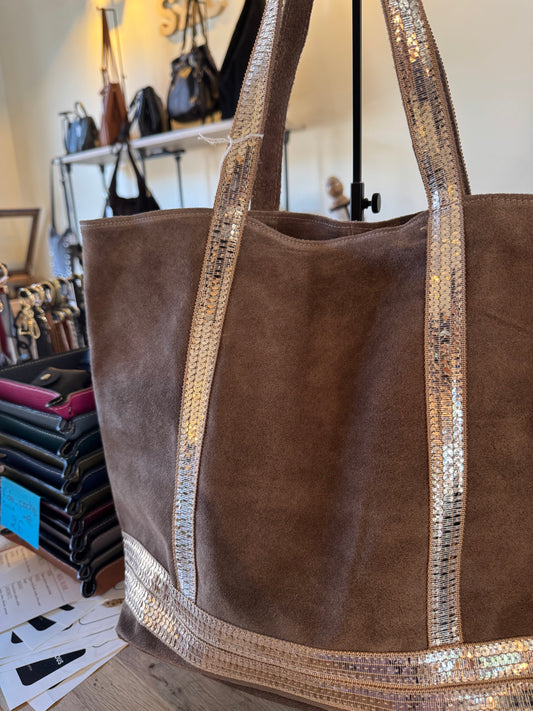 Sac cabas Lila en cuir suédé avec strass (coloris taupe)
