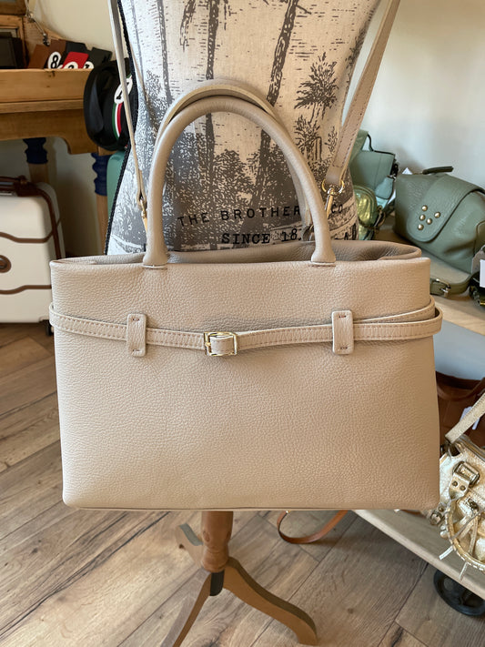 Sac bandoulière en raphia et cuir coloris nude - Eva