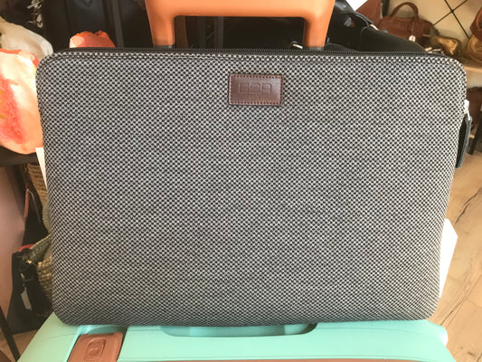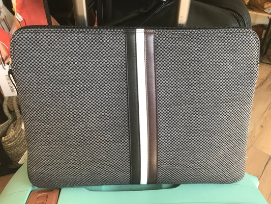 Pochette ordinateur E2R 15 pouces en tissu et cuir upcyclé