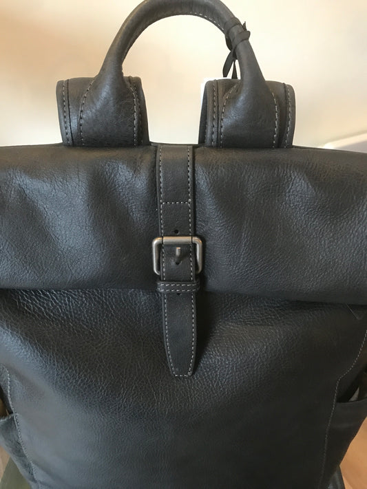 Sac à dos roulé en cuir ligne SPIDER coloris noir- Etrier