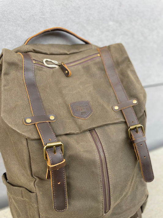 Sac à dos au look vintage en toile waxée et cuir - Alaskan Maker