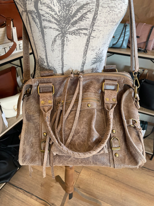 Sac à main/Sac à dos Zelia en cuir grainé taupe