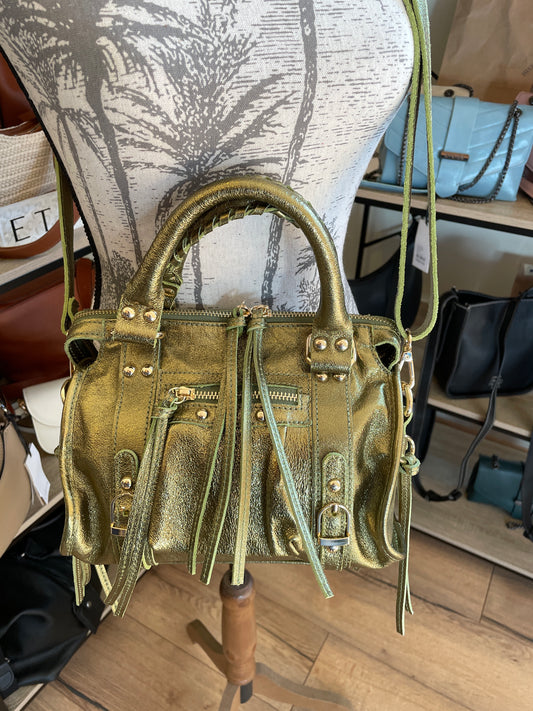Sac Amandine mini en cuir irisé - vert olive