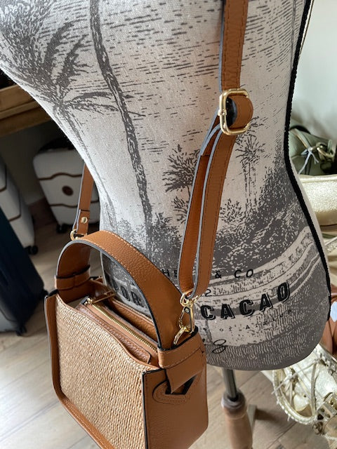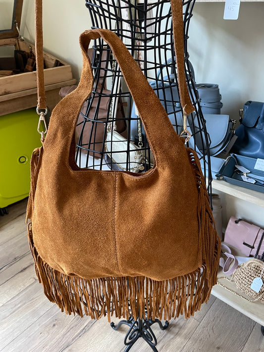 Sac Giulia en cuir suédé avec franges(coloris cognac)