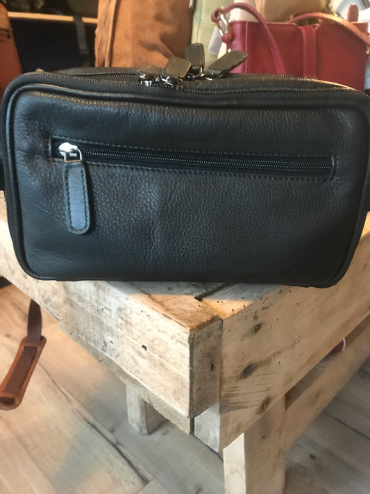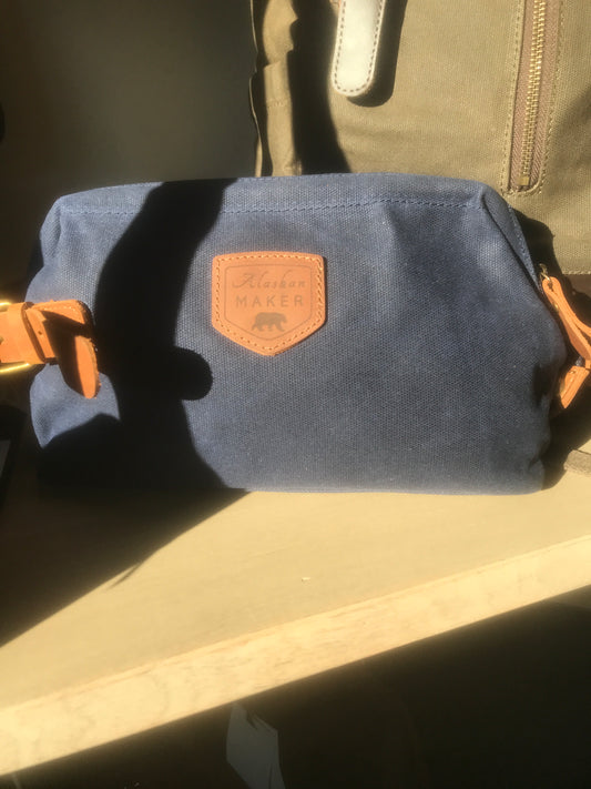 Trousse de toilette bleu marine pour les baroudeurs en toile waxée et cuir - Alaskan Maker