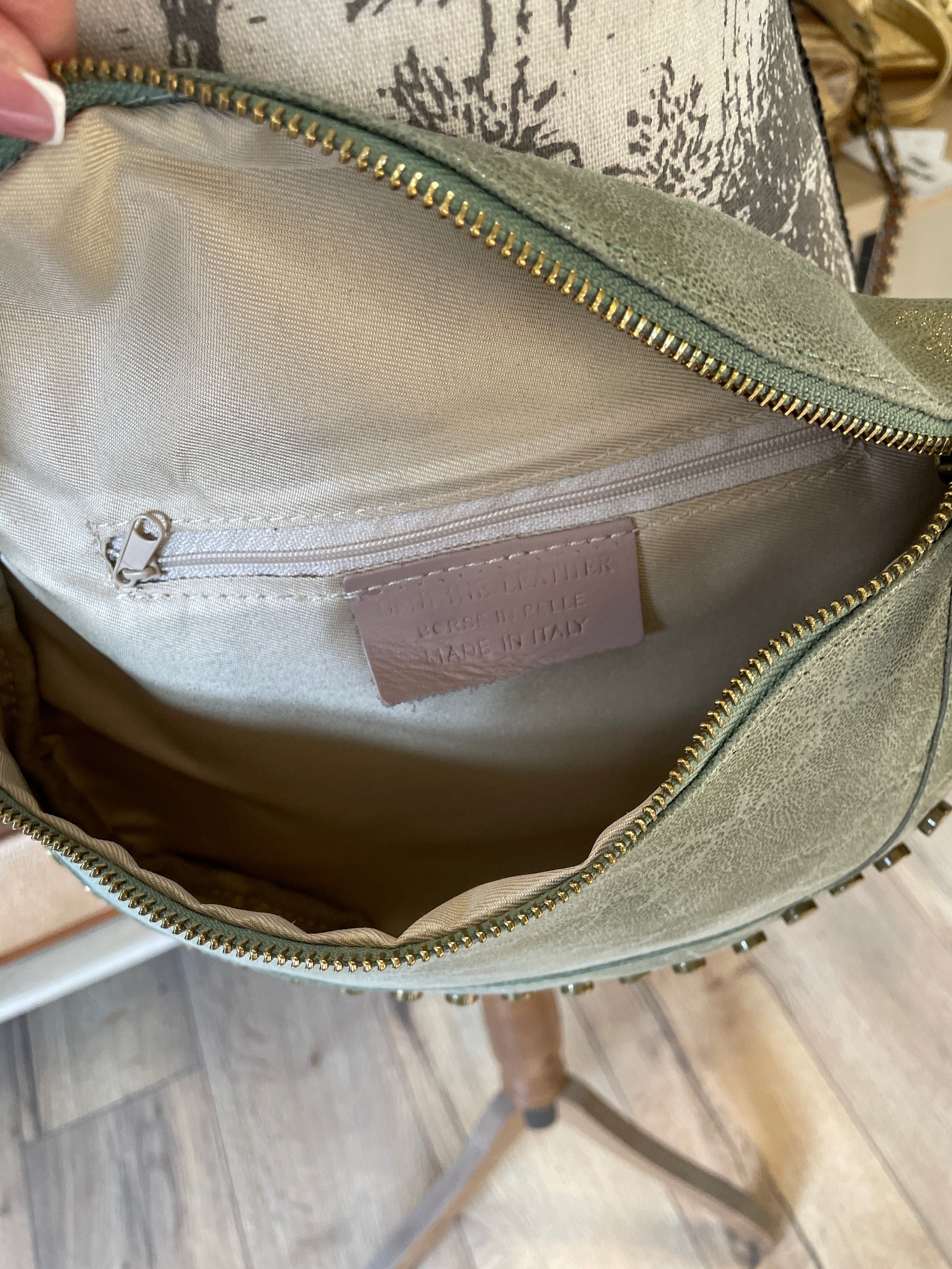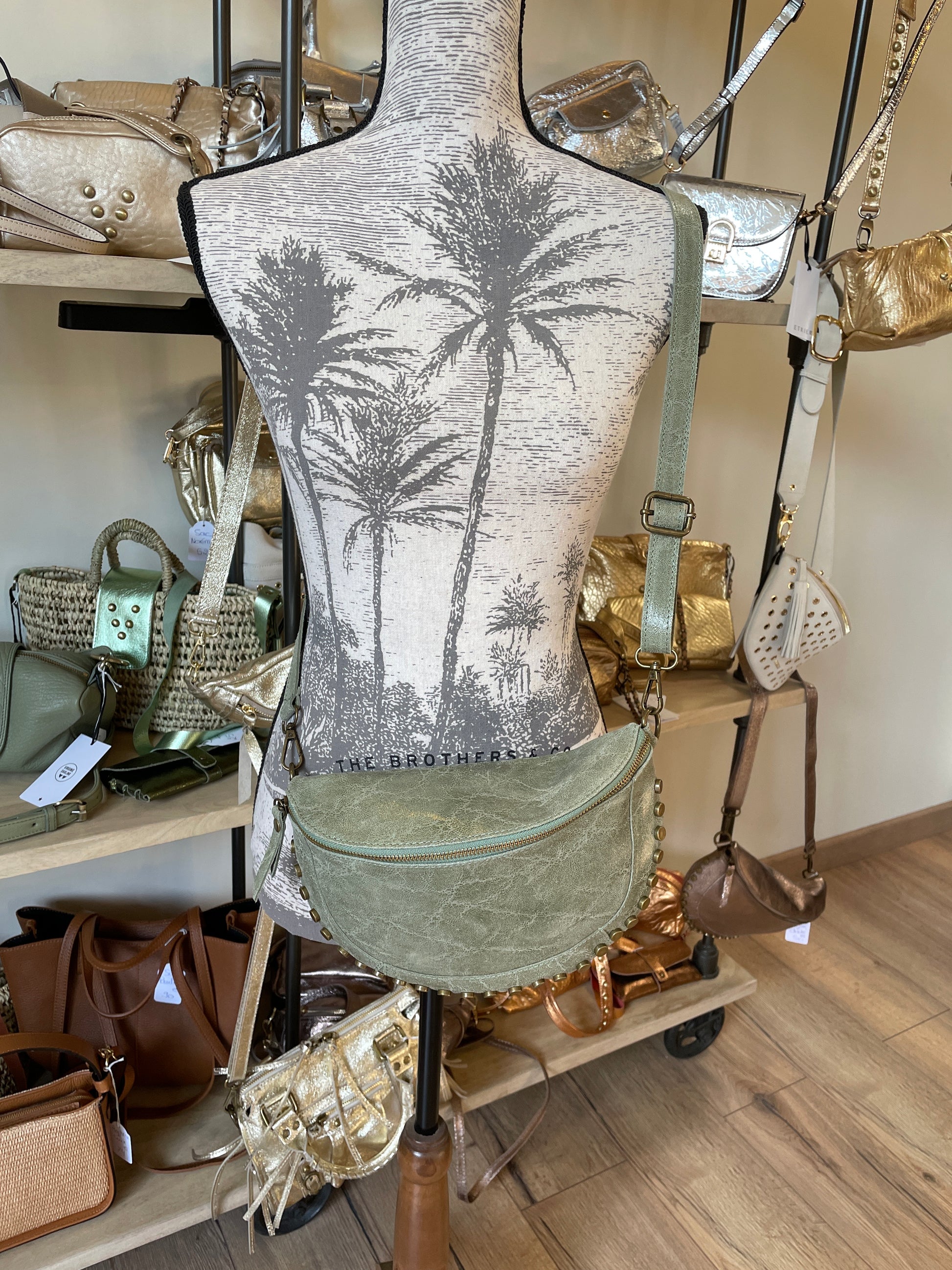 Banane Clem en cuir brossé et clouté - verte