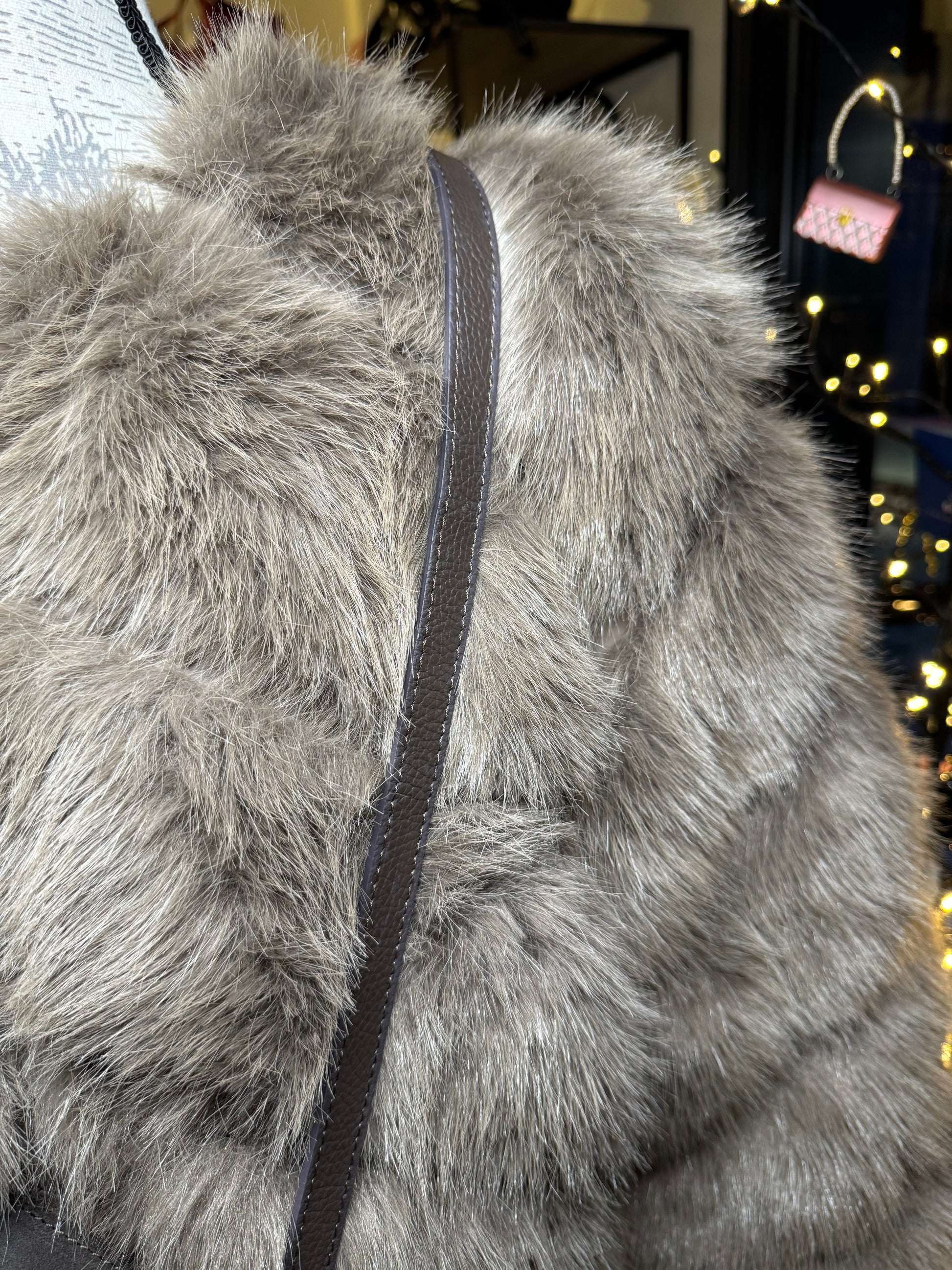 Petit sac en daim avec bandoulière amovible et réglable (max 109 cm avec les mousquetons)