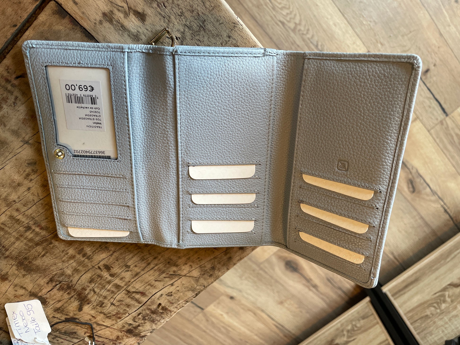 Portefeuille en cuir grainé de la marque ÉTRIER et de la ligne Tradition, il possède deux compartiments distincts, une partie avec pression dans laquelle se trouve dix huit compartiments pour cartes, emplacements pour les billets plus une autre partie zippée pour ranger votre monnaie