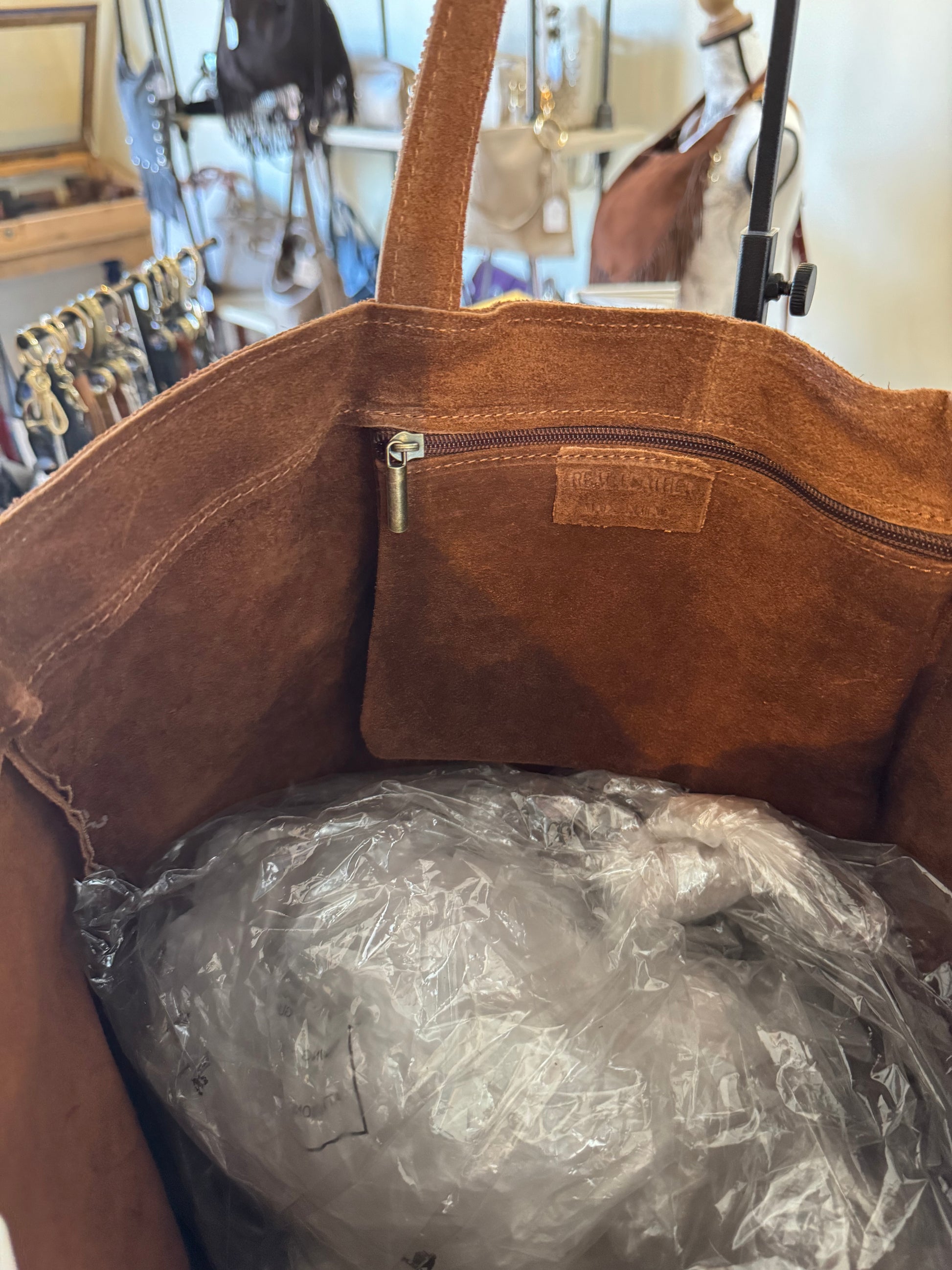 Beau sac cabas en cuir suédé