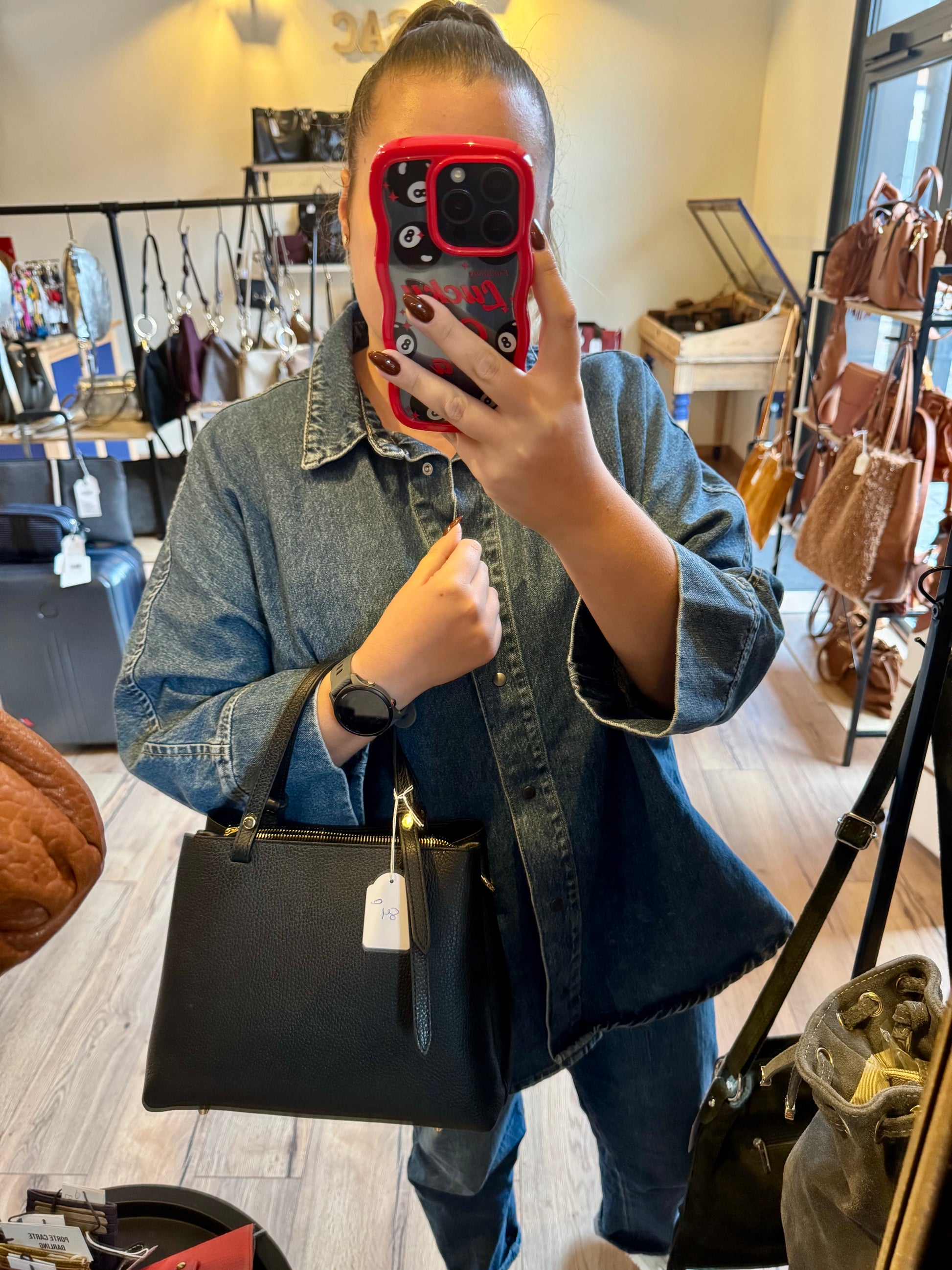 Beau sac à main à l’allure classique pouvant être porté également en bandoulière.